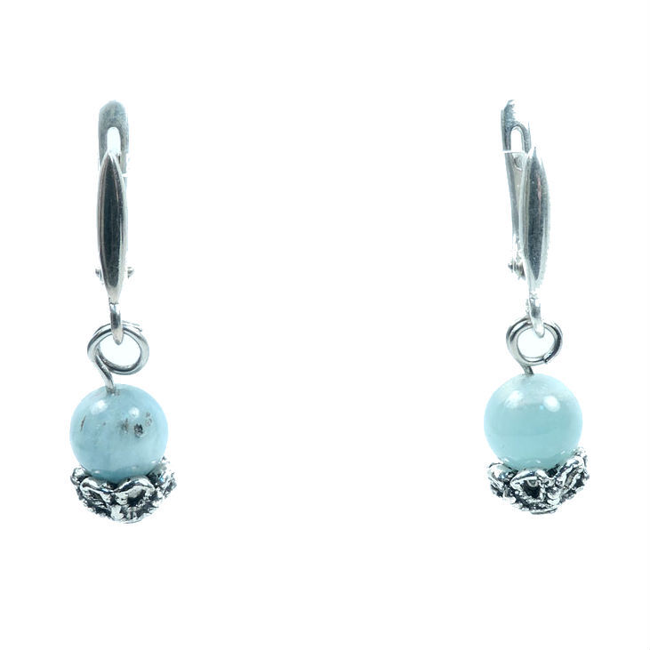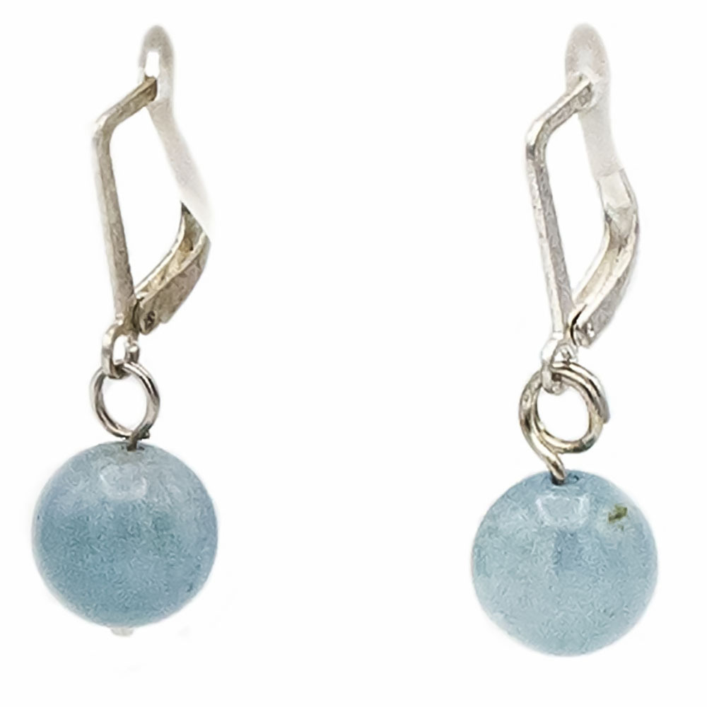 Сборные висячие серьги со вставками аквамарина. Сквозное сверление.