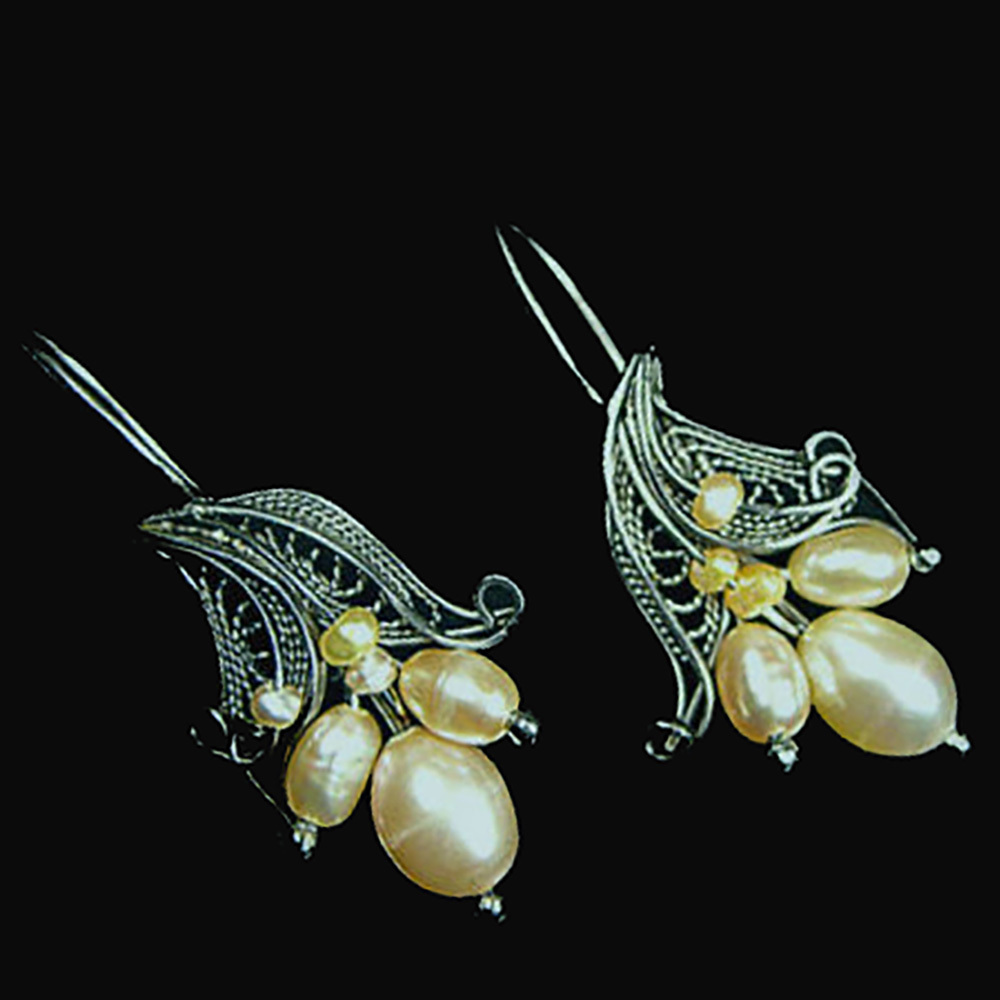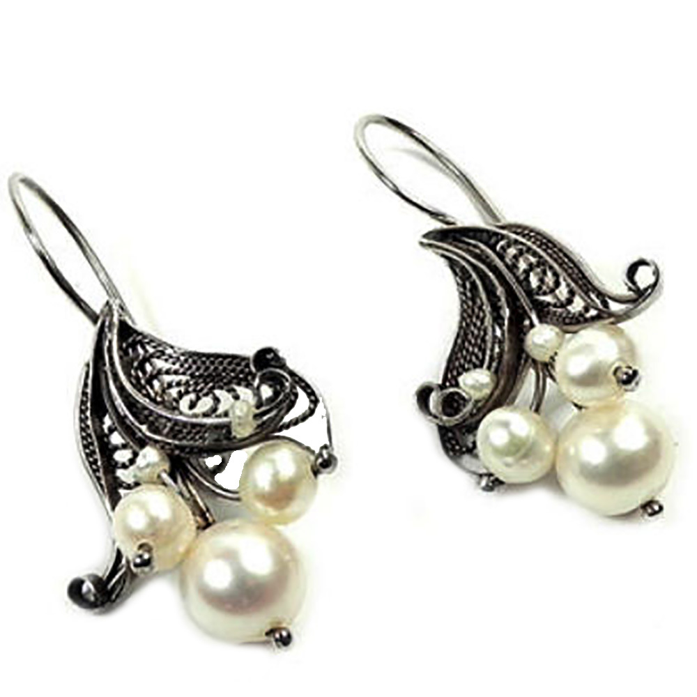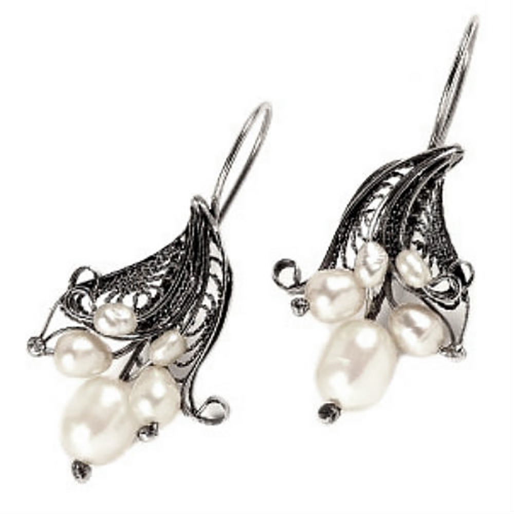 Авторские изящные серьги со вставками культивированного жемчуга.