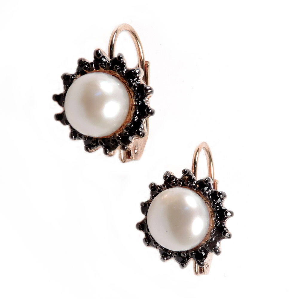 Сверкающие серьги со вставками жемчуга и фианитов.