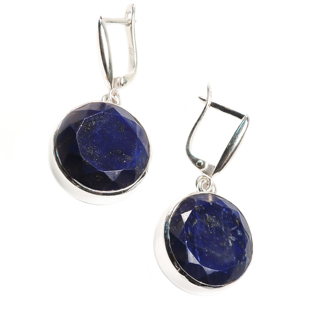Серьги висячие с подвесами натурального лазурита.