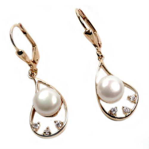 Нарядные висячие серьги со вставками жемчуга и фианита.