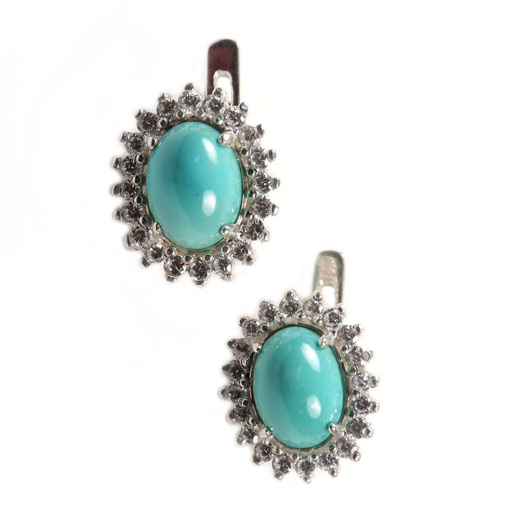 Серьги с подвижными вставками из натуральной бирюзы и фианитов.