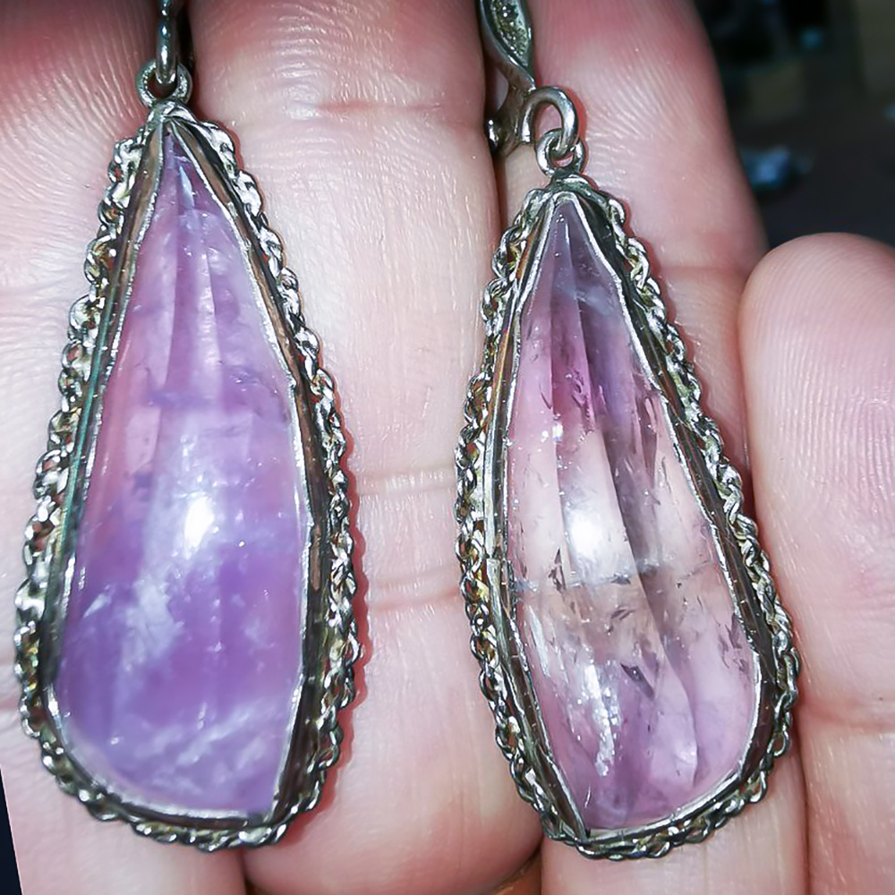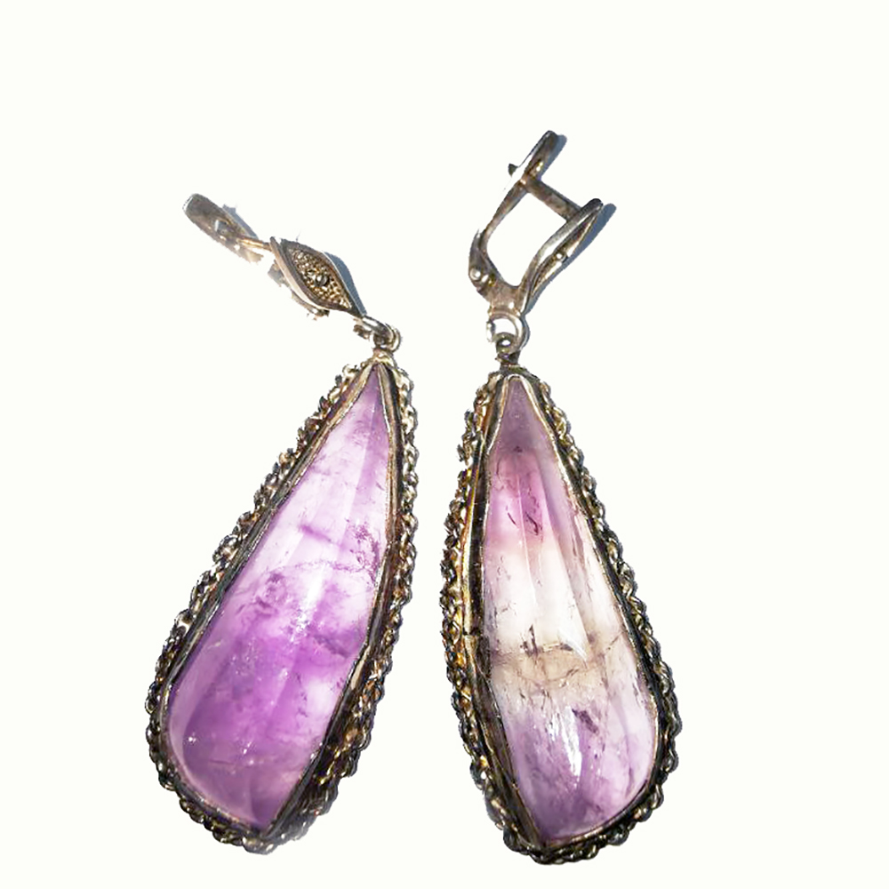 Цвет минерала нежный лимонно-лиловый, прозрачный.