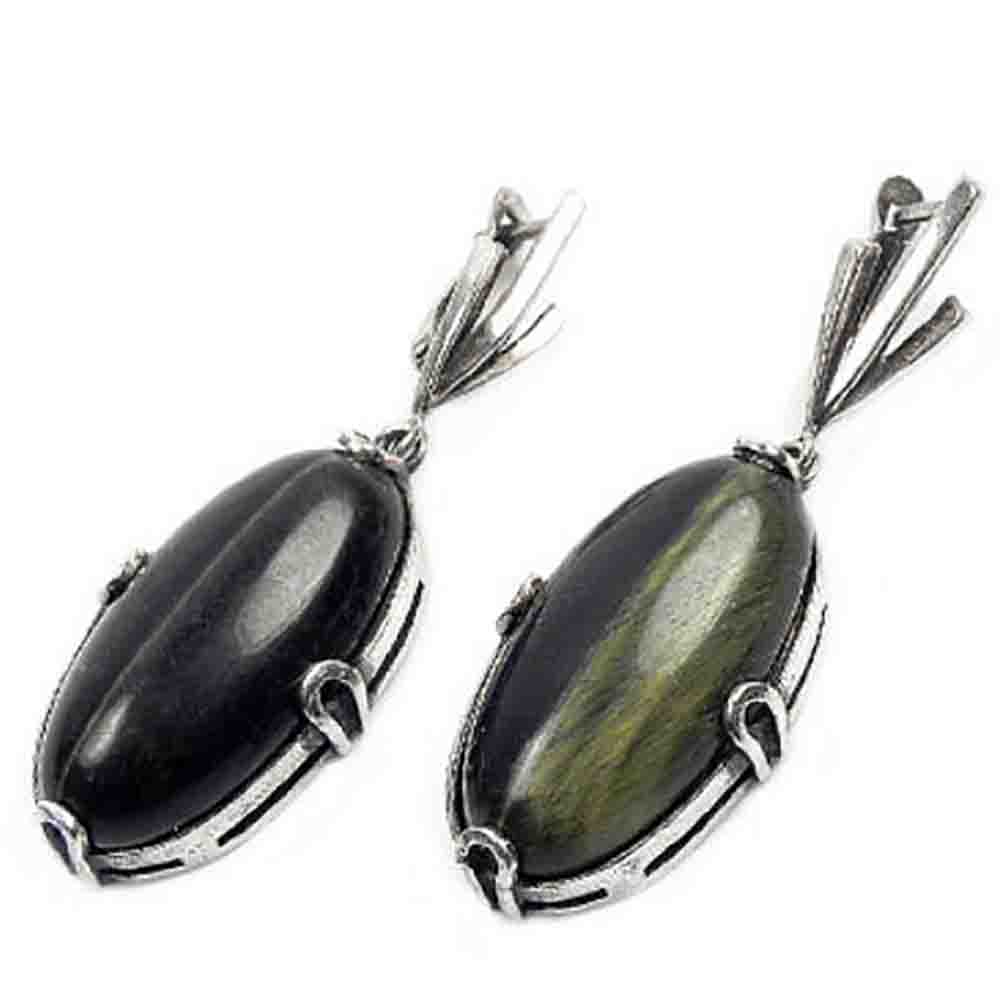Крупные серьги со вставками натурального глазкового камня.