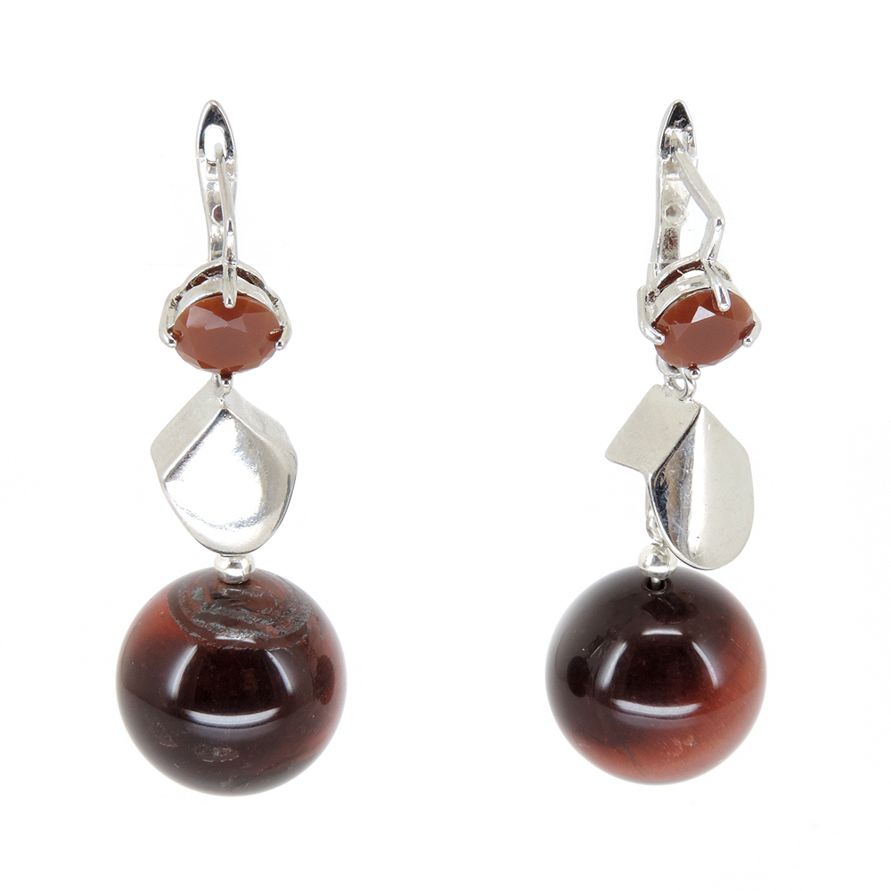 Серьги с бычьим глазом. Диаметр шариков 18мм. Граненная вставка халцедона 8мм