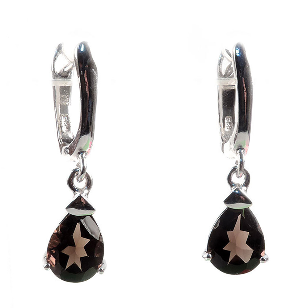 Изящные висячие серьги с подвесами кварца раухтопаза.