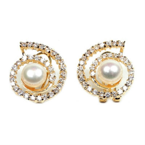 Молочно-белая жемчужина в спирали фианитовых искр.