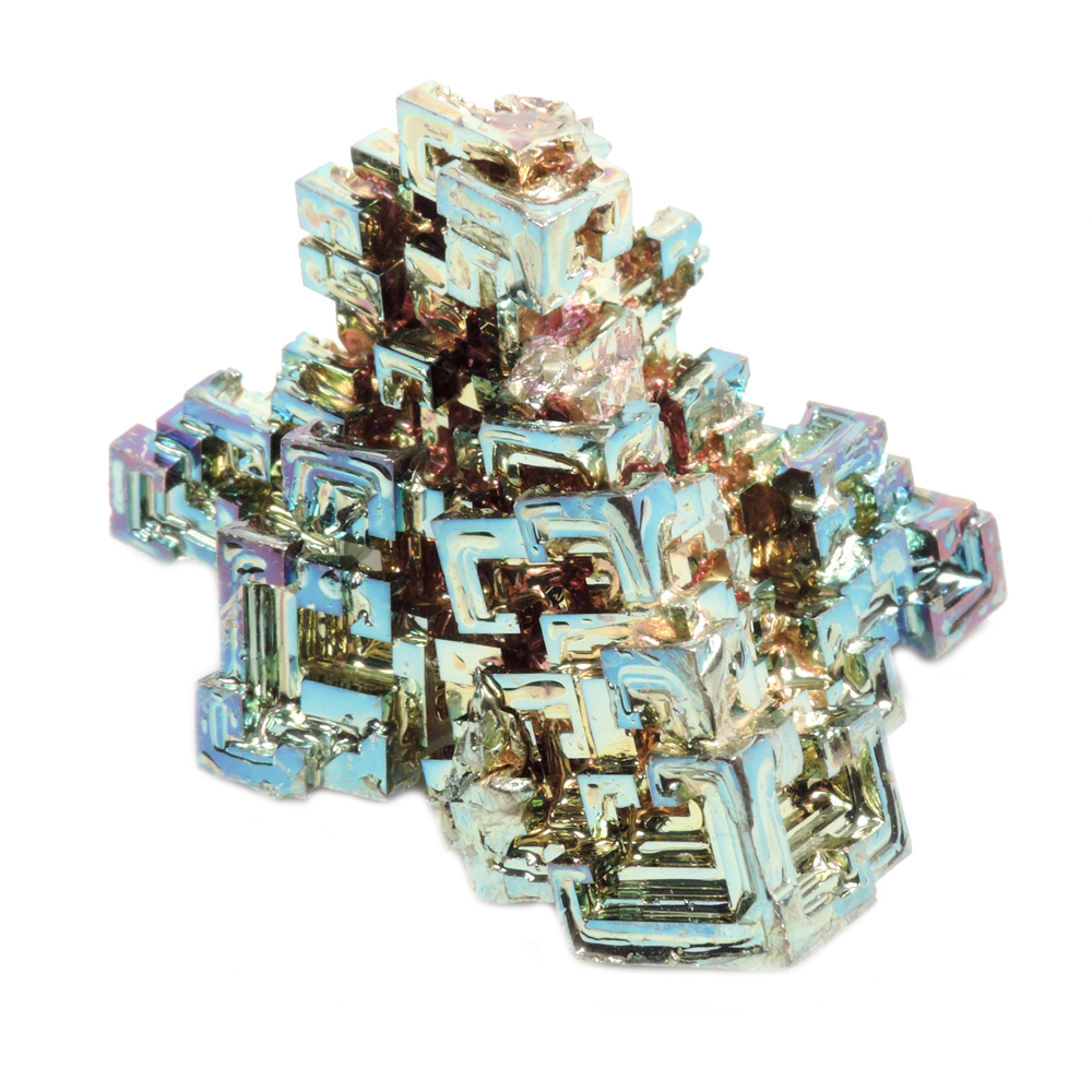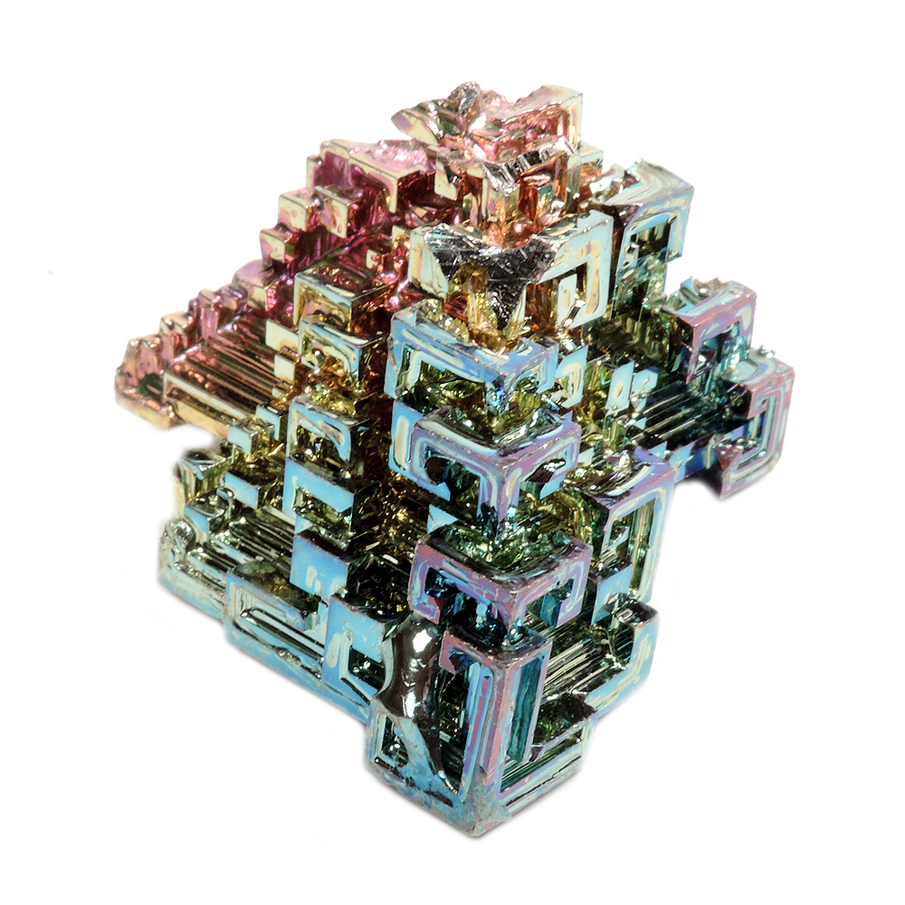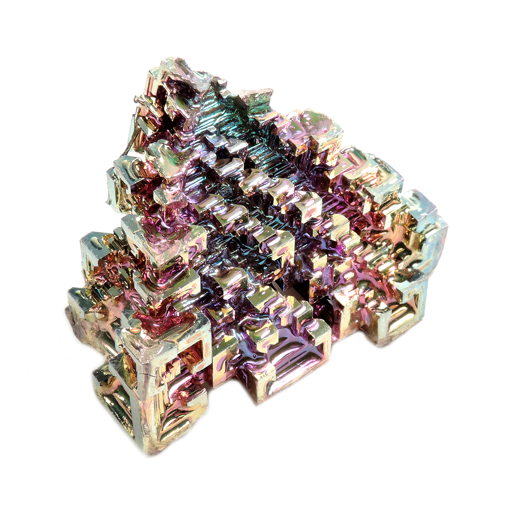 Синтезированный кристалл висмута. Радужную окраску придаёт оксидная плёнка.