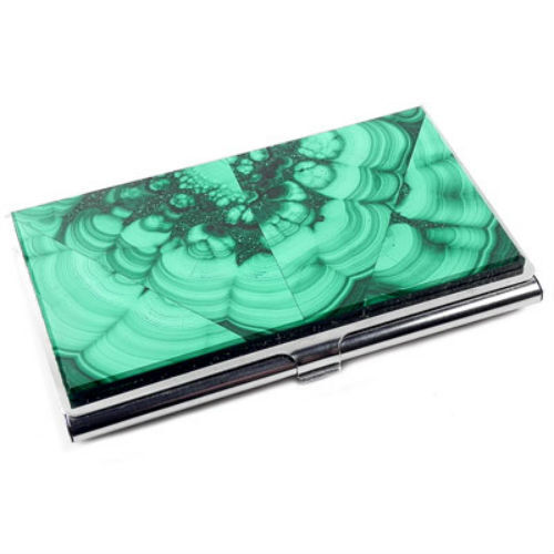 Визитница с накладкой (дуо- с двусторонней) натурального малахита